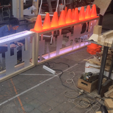 I help them with the light design and built a small piece of code run by an arduino in order to move a few led strips.